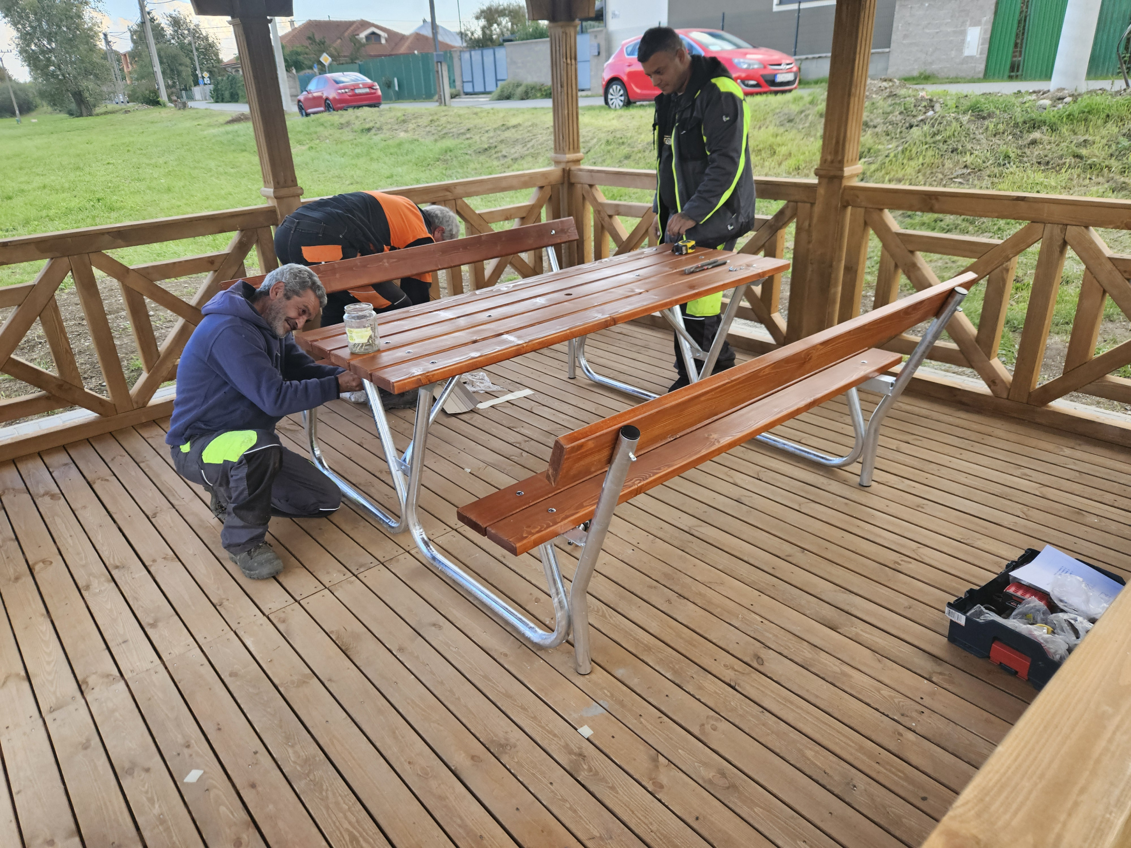 Drevený altánok je vybavený dvoma lavicami a stolom, ktoré sú pevne ukotvené na podkladovej ploche, čím poskytujú komfortný priestor pre návštevníkov. Okrem toho je v blízkosti altánku pripravené miesto pre umiestnenie betónového ohniska, čo rozširuje možnosti využitia tohto priestoru na rôzne spoločenské a rekreačné aktivity.