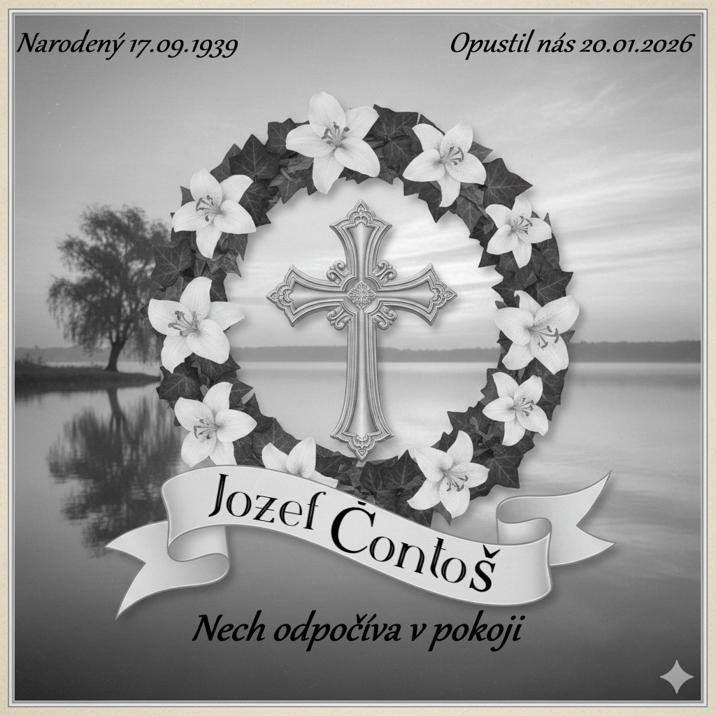 Smútiaca rodina so zármutkom oznamuje, že vo veku 86 rokov nás opustil manžel, otec, dedko, príbuzný a známy Jozef Čontoš z Čechovovej ulice. Posledná rozlúčka so zosnulým bude 22.01.2026 o 10:00 v Dome nádeje na miestnom cintoríne v Krásnej. Nech odpočíva v pokoji.